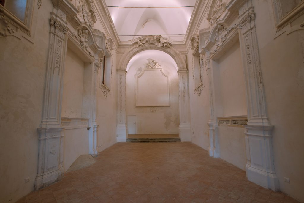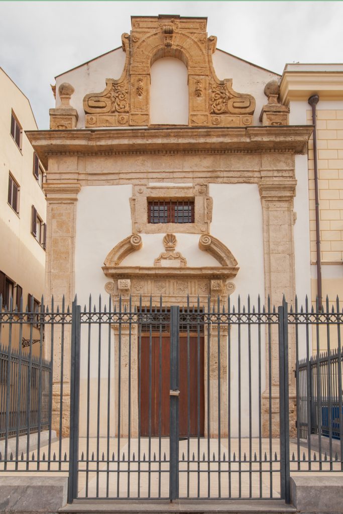 Chiesa dei SS Euno e Giuliano was built from 1651 to 1658 by the Confraternita dei Seggettieri (confraternity of the sedan-chair porters), which chose the two saints as the patrons of the religious brotherhood. The ‘seggettieri’ (or vastasi di cinga) were the men who carried sedan chairs, which were used to transport clients on seats set on poles. The church is composed of a single nave with two lateral altars dedicated to Madonna del Rosario and the SS. Crocifisso. The main altar was separated from the nave by means of a large arch and decorated pillars. It probably featured the altarpiece in honour of the two patron saints created by Carlo d’Anselmo, which has now been lost. The decorations are attributed to the workshop of Procopio Serpotta.