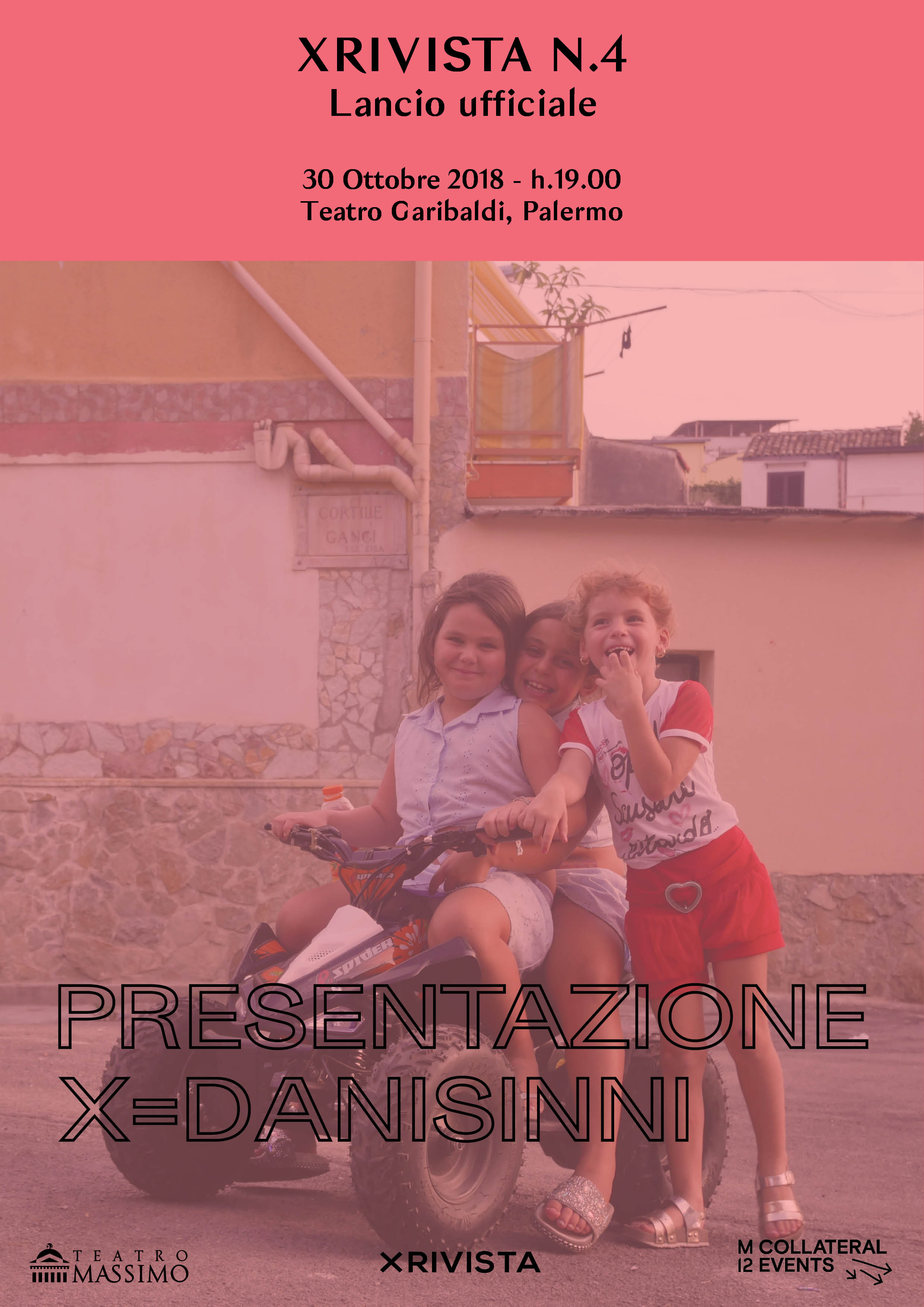 Il Collettivo XRIVISTA è lieto di invitarLa alla presentazione della sua quarta pubblicazione, X=DANISINNI, realizzato a seguito della residenza d’artista che si è svolta a Palermo nel quartiere Danisinni, dal 2 al 15 settembre scorso. La residenza, che ha visto la partecipazione di otto artisti internazionali, è stata resa possibile grazie alla collaborazione di Manifesta12 che l’ha ospitata nell’ambito dei Collateral Events, l’Associazione Insieme per Danisinni e Fratel Mauro Billetta, L’Accademia di Belle Arti di Palermo e il Museo Sociale di Danisinni, il Teatro Massimo di Palermo.