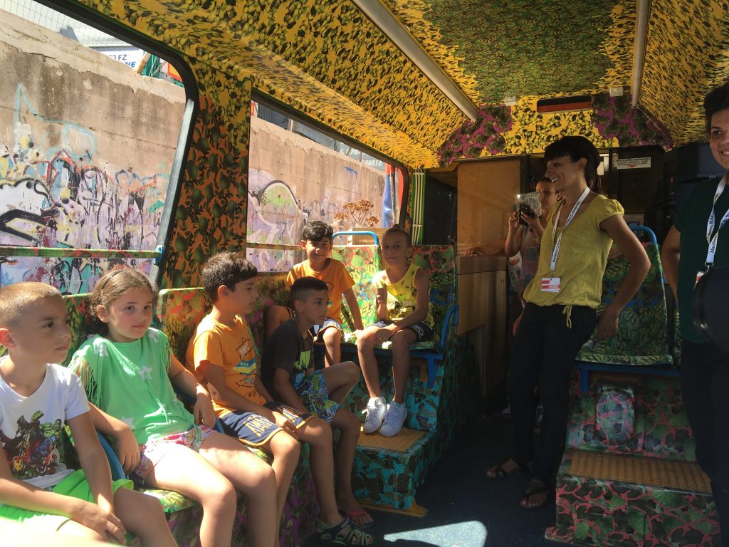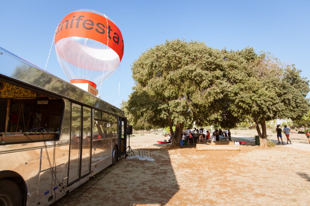 The Hub is a travelling education platform to reach out to and engage with various communities in the neighbourhoods of Palermo throughout the duration of Manifesta 12. The project is set up in a city bus, radically transformed by the students of the University of Palermo (Industrial Design course led by prof. Viviana Trapani) and Academy of Fine Arts (Graphic Design course led by prof. Cinzia Ferrara) under the guidance of Madrid-based architectural bureau ENORME Studio.