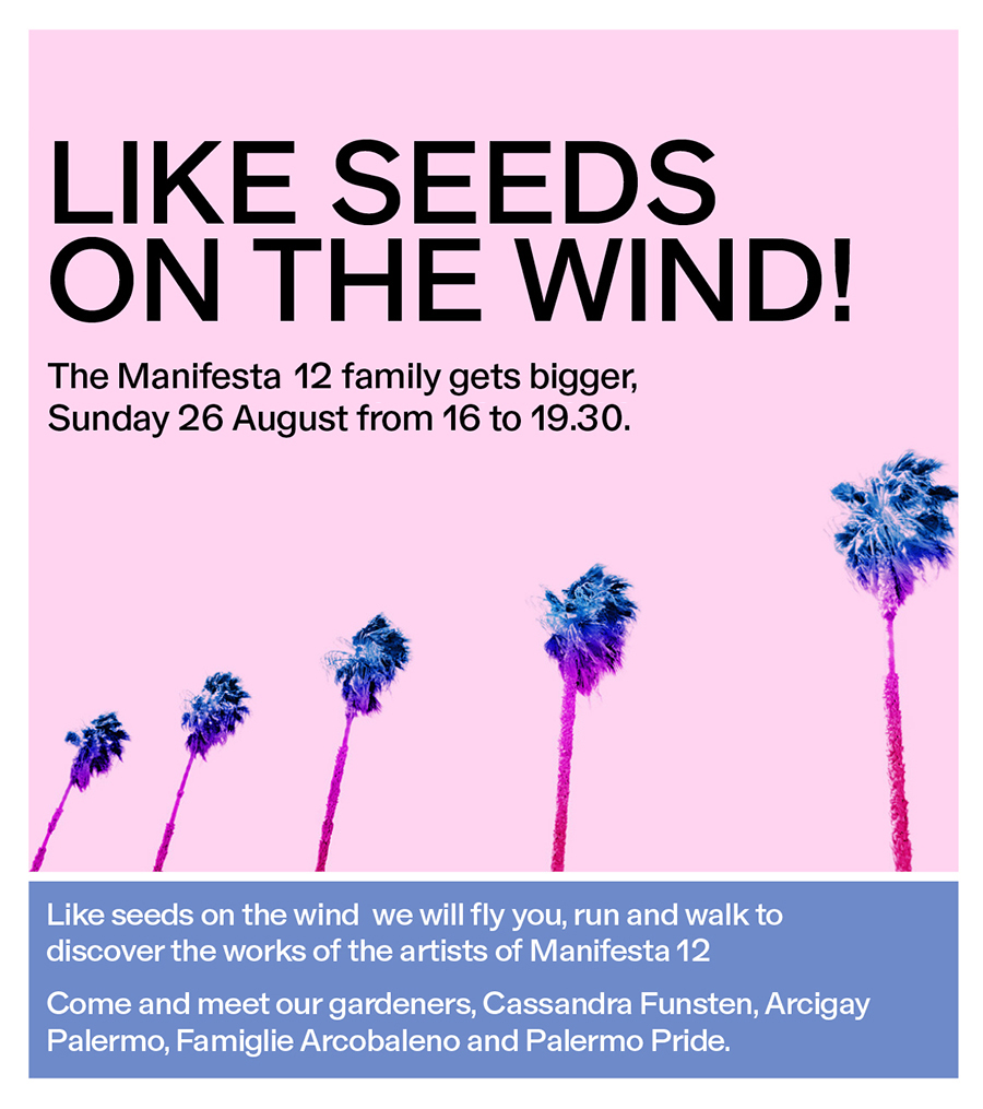 Once a month, from July to October, children and their parents can enjoy half a day with Manifesta 12 Palermo and take part in special activities created and produced by Manifesta 12 Gardeners and local artists. The activities include workshops for children and families, as well as free guided visits for parents.