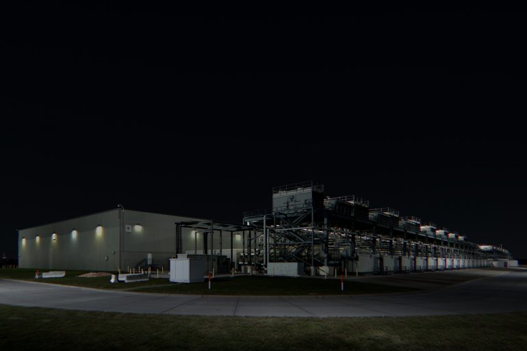 Digital networks are perceived as completely abstract and ephemeral. But in reality the constantly growing flow of data needs huge data farms to be stored and processed. These farms occupy large surfaces in remote areas of the world and consume an enormous amount. Farm (Council Bluffs, Iowa) renders such a physical infrastructure visible. The building, created by the company Google houses many thousands of internet servers and processes a significant portion of the global information load. Working with a team of modellers and technicians, the visually and conceptually intricate structure has been remade by hand as a hyper-realistic simulated world. Animated through the use of a gaming engine, the building shifts from a physical reality to a model. The camera in the resultant world moves at a profoundly slow pace, both revealing and appearing to scan the site. The building is placed in light orbit of a year, allowing night and day to travel over the portrait across an annual cycle.