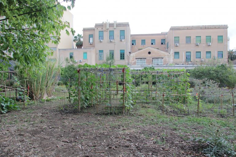 The result of ten years of collecting seeds and stories has taken shape as an experimental garden where migrating varieties cohabit and are acclimated, set in the Botanical Garden in Palermo. Inspired by the fundamentally hybrid genealogy of Sicilian plants and vegetables, the artist has built a bower in the former colonial section of the Botanical Garden, which was once dedicated to acclimation experiments run on species brought from the colonies. The construction of a hybrid bower upends the historic significance of this space: acclimation is no longer imposed as part of a power-based relationship, but is a natural process. Here, the cucuzza (a snakelike summer squash essential to Sicilian home cooking) grows alongside its Bengali, Sri Lankan, Philippine, Turkish, and Chinese counterparts. A sort of cabinet of curiosities has been set up in the Gymnasium, the result of the fieldwork Contini has done on ‘foreign’ farming practices over recent years.