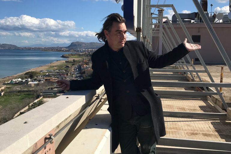 For this project Jordi Colomer has created a lay procession on boats in the sea, setting out from the Caletta Sant’Erasmo and heading along the South Coast. On board are exponents of the various communities of the city of Palermo. A video shows the route, whose various stages are described in texts specially written by the Palermo-born writer Roberto Alajmo. In urban terms, Caletta Sant’Erasmo is composed of a series of old buildings and historic architectures in a state of partial abandonment, new buildings in the outskirts, a small beach, and a quay for small ships. A combination of heterogeneous elements which allows us to define the area as a place that is suspended, but at the same time capable of serving as a territorial intermediary.